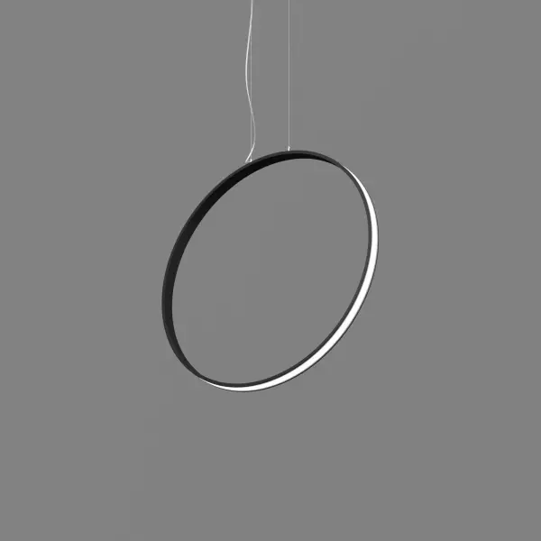 Серия подвесных светодиодных светильников кольцеобразной формы ORIO VERTICAL (торговая марка БОСМА). Светильник представляет собой подвешенное вертикально плоское кольцо толщиной 52 мм и высотой 14 мм. Источник света может быть расположен на внутренней (версия IN) или на внешней поверхности кольца (версия OUT). Драйвер расположен в декоративном драйвер боксе, с помощью которого осуществляется крепление к плоскости потолка. Светильник поставляется с комплектом регулируемых подвесов.