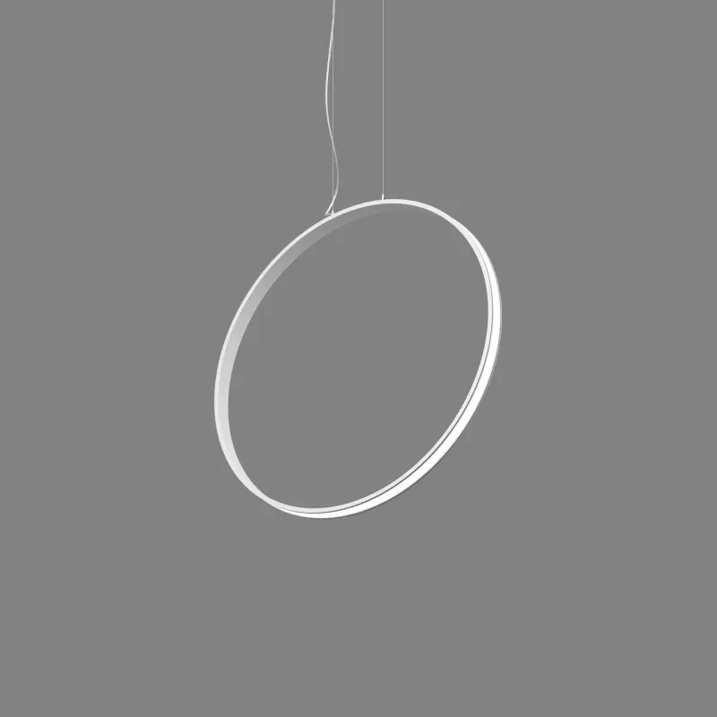 Серия подвесных светодиодных светильников кольцеобразной формы ORIO VERTICAL (торговая марка БОСМА). Светильник представляет собой подвешенное вертикально плоское кольцо толщиной 52 мм и высотой 14 мм. Источник света может быть расположен на внутренней (версия IN) или на внешней поверхности кольца (версия OUT). Драйвер расположен в декоративном драйвер боксе, с помощью которого осуществляется крепление к плоскости потолка. Светильник поставляется с комплектом регулируемых подвесов.