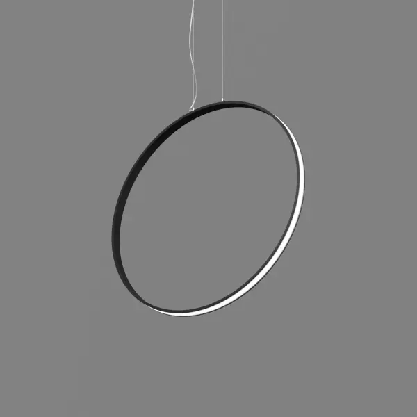 Серия подвесных светодиодных светильников кольцеобразной формы ORIO VERTICAL (торговая марка БОСМА). Светильник представляет собой подвешенное вертикально плоское кольцо толщиной 52 мм и высотой 14 мм. Источник света может быть расположен на внутренней (версия IN) или на внешней поверхности кольца (версия OUT). Драйвер расположен в декоративном драйвер боксе, с помощью которого осуществляется крепление к плоскости потолка. Светильник поставляется с комплектом регулируемых подвесов.