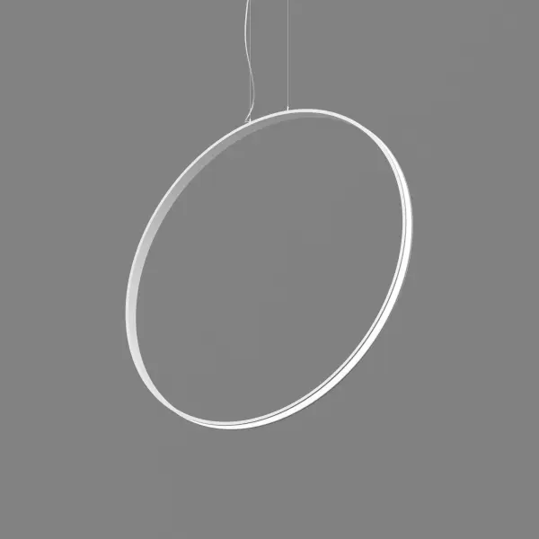 Серия подвесных светодиодных светильников кольцеобразной формы ORIO VERTICAL (торговая марка БОСМА). Светильник представляет собой подвешенное вертикально плоское кольцо толщиной 52 мм и высотой 14 мм. Источник света может быть расположен на внутренней (версия IN) или на внешней поверхности кольца (версия OUT). Драйвер расположен в декоративном драйвер боксе, с помощью которого осуществляется крепление к плоскости потолка. Светильник поставляется с комплектом регулируемых подвесов.