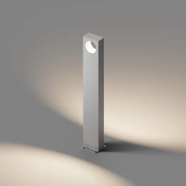Прямоугольный корпус со сквозным круглым отверстием делает этот светильник узнаваемым и стильным элементом современного освещения. Но главная особенность — не только форма, а продуманная световая схема: свет падает сразу в двух направлениях, подчеркивая линии дорожек и освещая ландшафтные композиции.