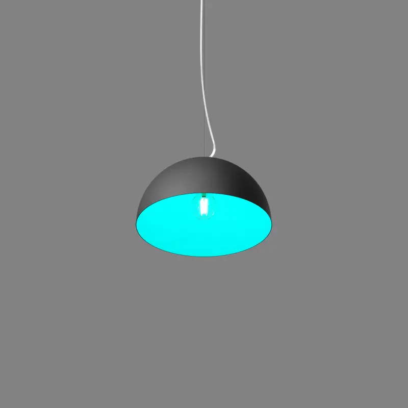 Каждый светильник выполнен в форме полусферы и окрашен в контрастные цвета: БЕЛЫЙ/МОРСКАЯ ВОЛНА, ЧЕРНЫЙ/ЗОЛОТО ПОТАЛЬ, ЧЕРНЫЙ/ПУРПУРНЫЙ.