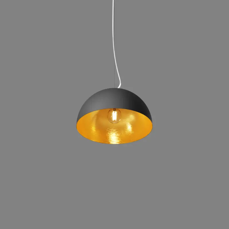 Каждый светильник выполнен в форме полусферы и окрашен в контрастные цвета: БЕЛЫЙ/МОРСКАЯ ВОЛНА, ЧЕРНЫЙ/ЗОЛОТО ПОТАЛЬ, ЧЕРНЫЙ/ПУРПУРНЫЙ.