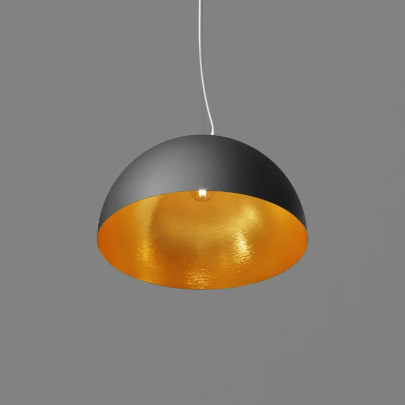 Каждый светильник выполнен в форме полусферы и окрашен в контрастные цвета: БЕЛЫЙ/МОРСКАЯ ВОЛНА, ЧЕРНЫЙ/ЗОЛОТО ПОТАЛЬ, ЧЕРНЫЙ/ПУРПУРНЫЙ.