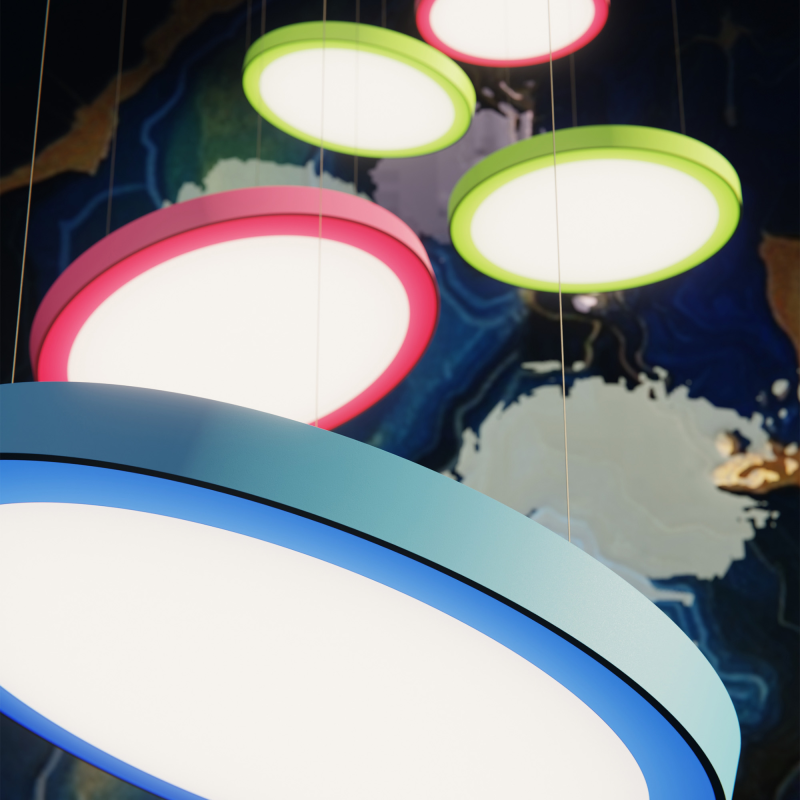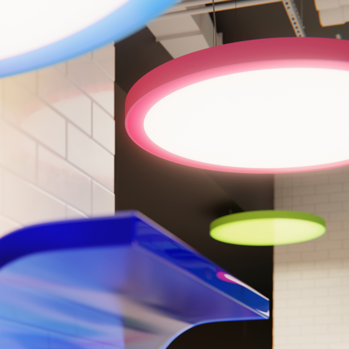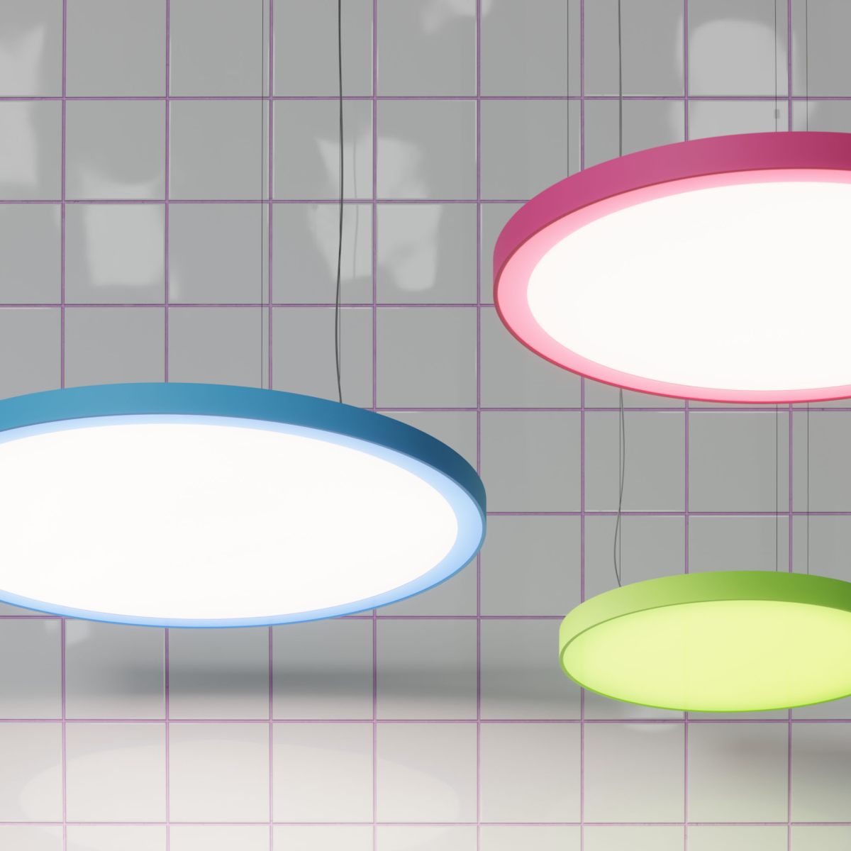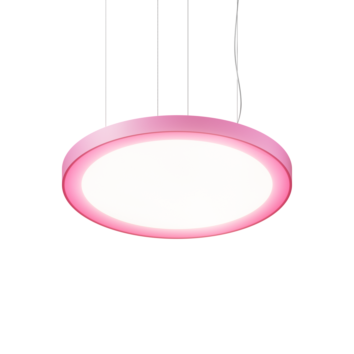 Модель RINGO ACRYL — это подвесной светильник, где функциональность встречается с магией света. Его уникальность заключается в двухслойной конструкции рассеивателей, которая создает многоуровневый световой эффект. Центральная часть выполнена из опалового или сатинового акрила и отвечает за основное освещение — она обеспечивает мягкий, равномерный и комфортный белый свет для решения любых задач. При этом по самому краю светильника расположено тонкое декоративное кольцо из цветного акрила. Это кольцо, подсвеченное изнутри, создает потрясающий и яркий эффект неонового свечения, добавляя интерьеру современности и художественной выразительности. RINGO ACRYL идеально подходит для тех, кто ищет не просто источник света, а готовое дизайнерское решение.