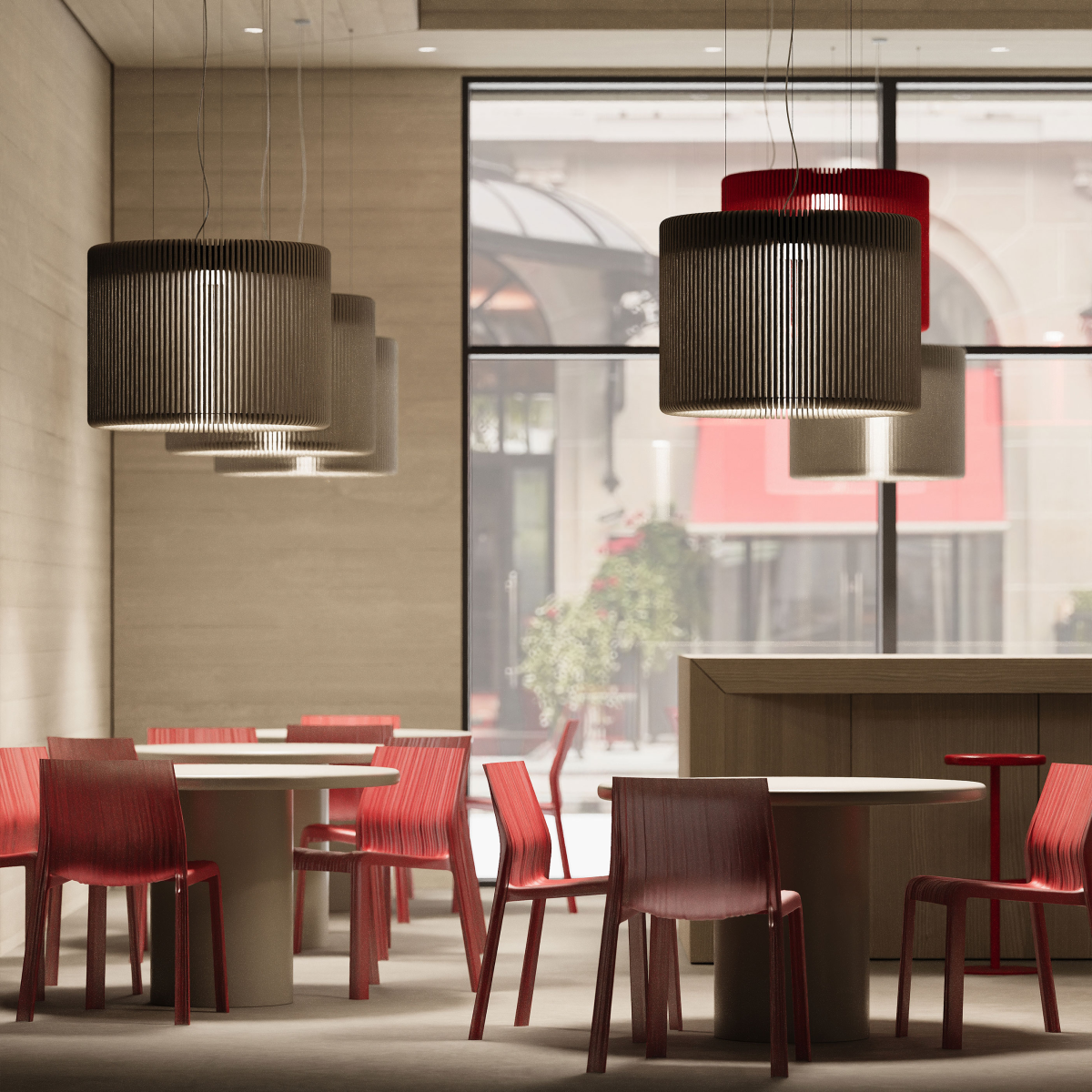 RINGO GRID SHADE ACOUSTIC отличается выразительным, но лаконичным дизайном, поэтому работает не только как источник света, но и как заметный элемент интерьера. Светильник органично смотрится в офисах, ресторанах, гостиницах, общественных пространствах, переговорных, лаунж-зонах и других проектах, где важны эстетика, акустика и комфорт.