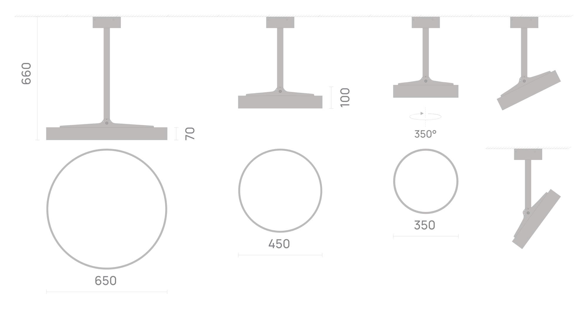 Главная особенность RINGO HR — подвижная световая часть. Она наклоняется и поворачивается по оси, позволяя точнее направлять свет и работать не только с уровнем освещенности, но и с композицией пространства. Светильник можно настроить под конкретную зону: переговорный стол, ресепшен, лаунж, экспозицию, рабочее место или архитектурный акцент.