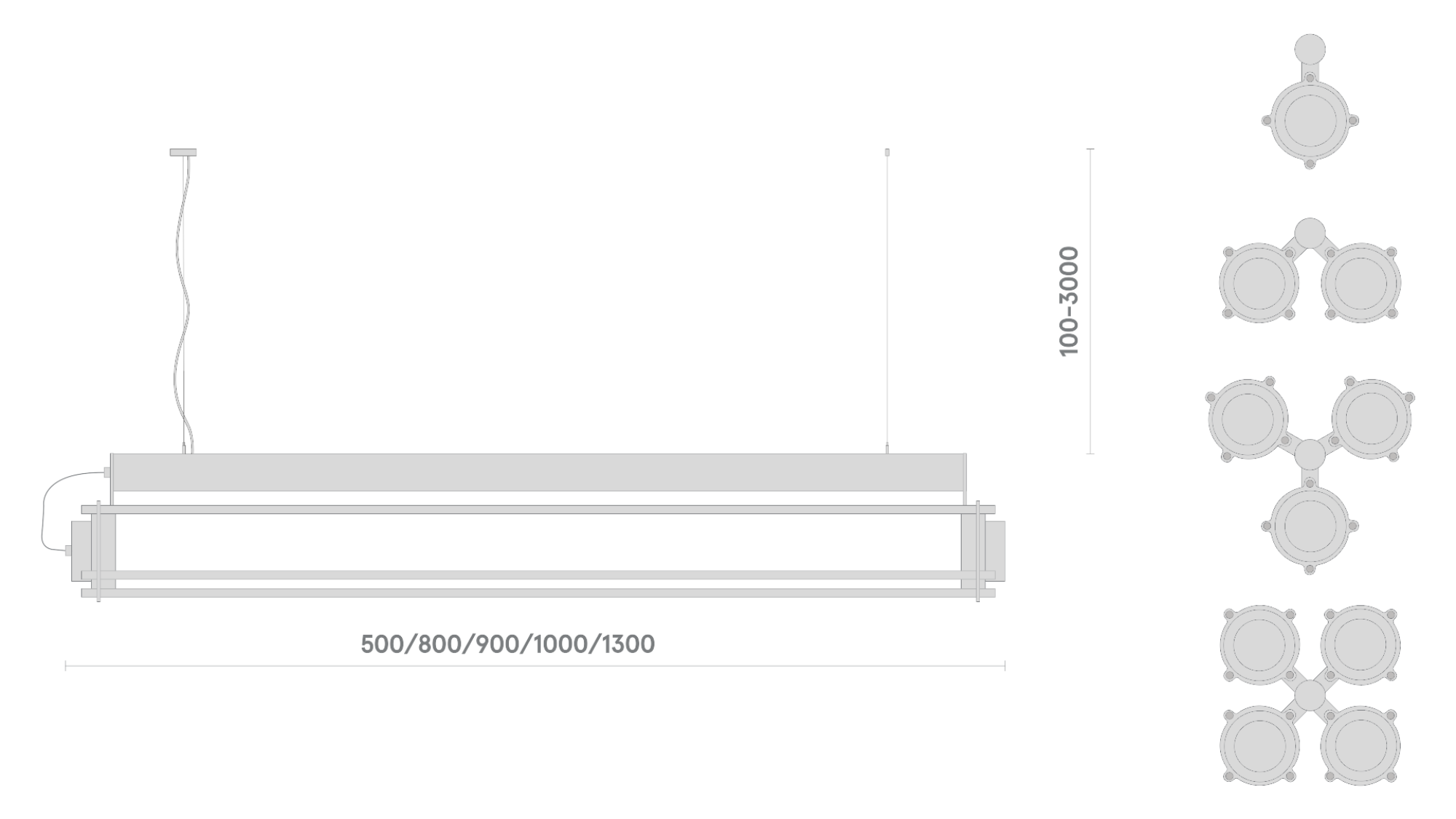- Увеличение длины подвеса и кабеля подключения;