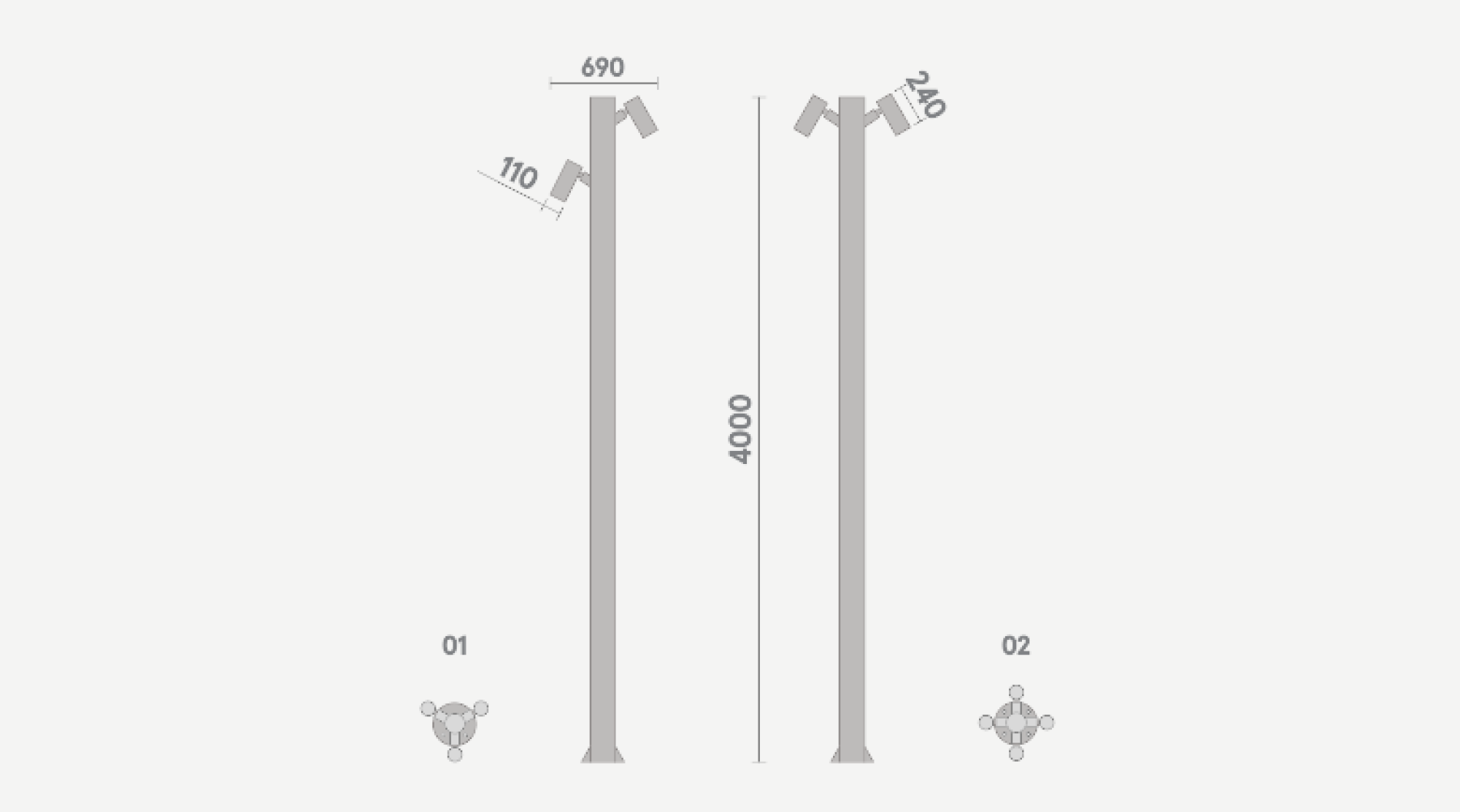 RUON ROTO spot может быть установлен двумя удобными методами: на закладную деталь или с использованием анкерного болта. Это означает, что светильник легко монтируется на различных поверхностях, включая грунт и бетон.