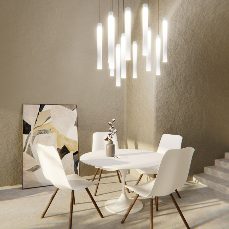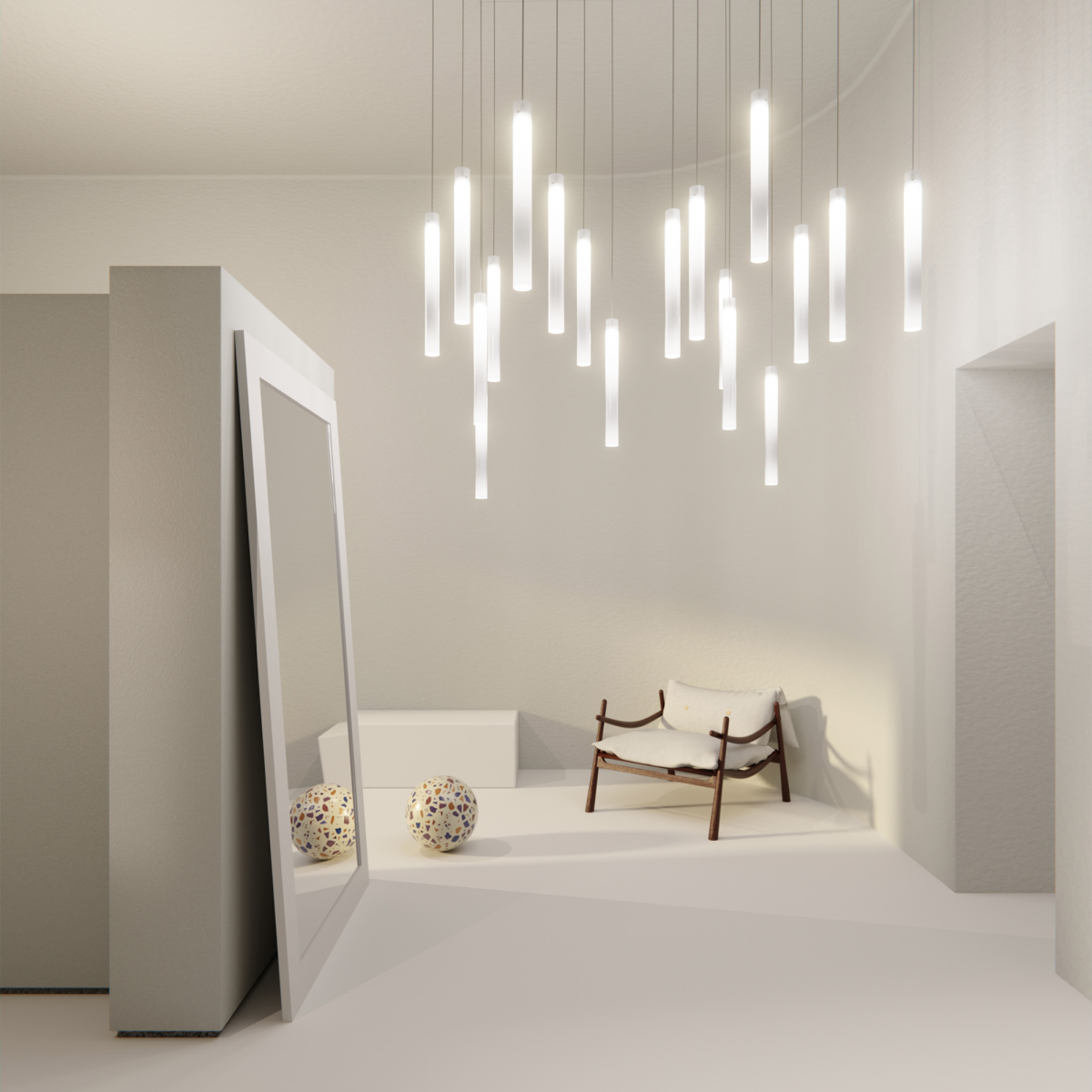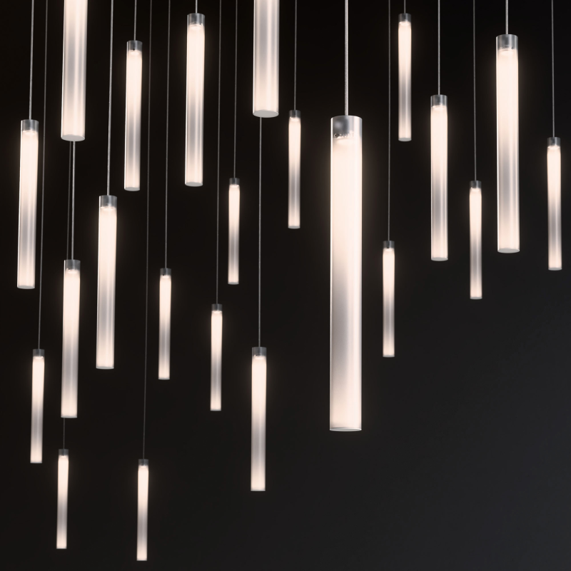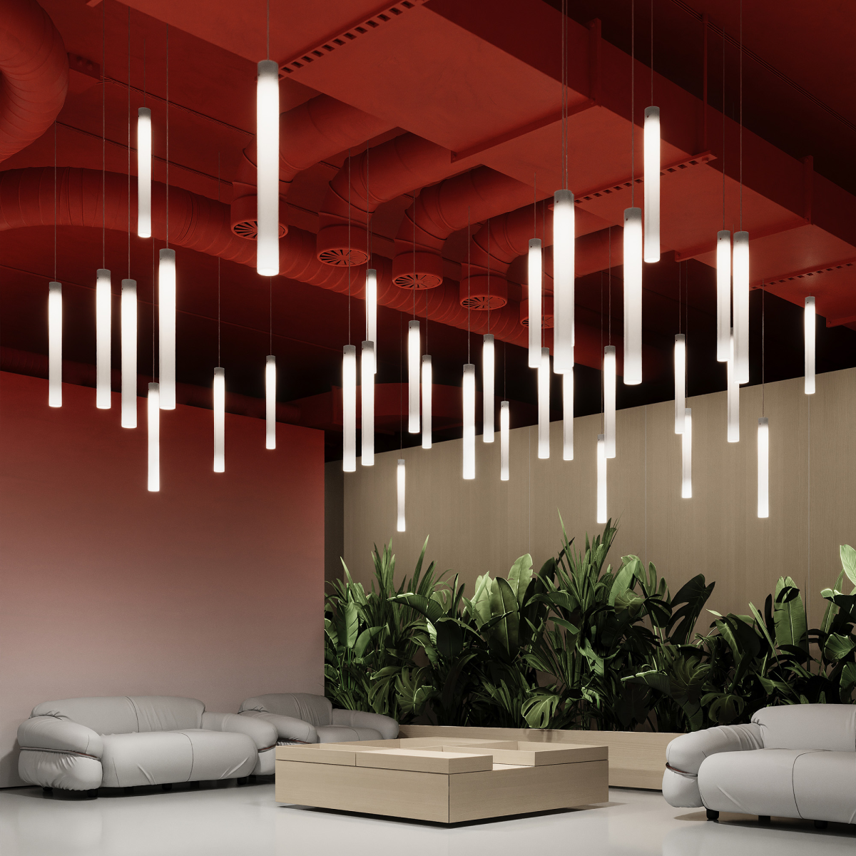 Подчёркивание градиента — нижний отражатель усиливает световой акцент. Визуальная утончённость — вместо традиционного опалового поликарбоната, светорассеивающая сатинированная труба из акрила с изысканным визуальным и тактильным эффектом.