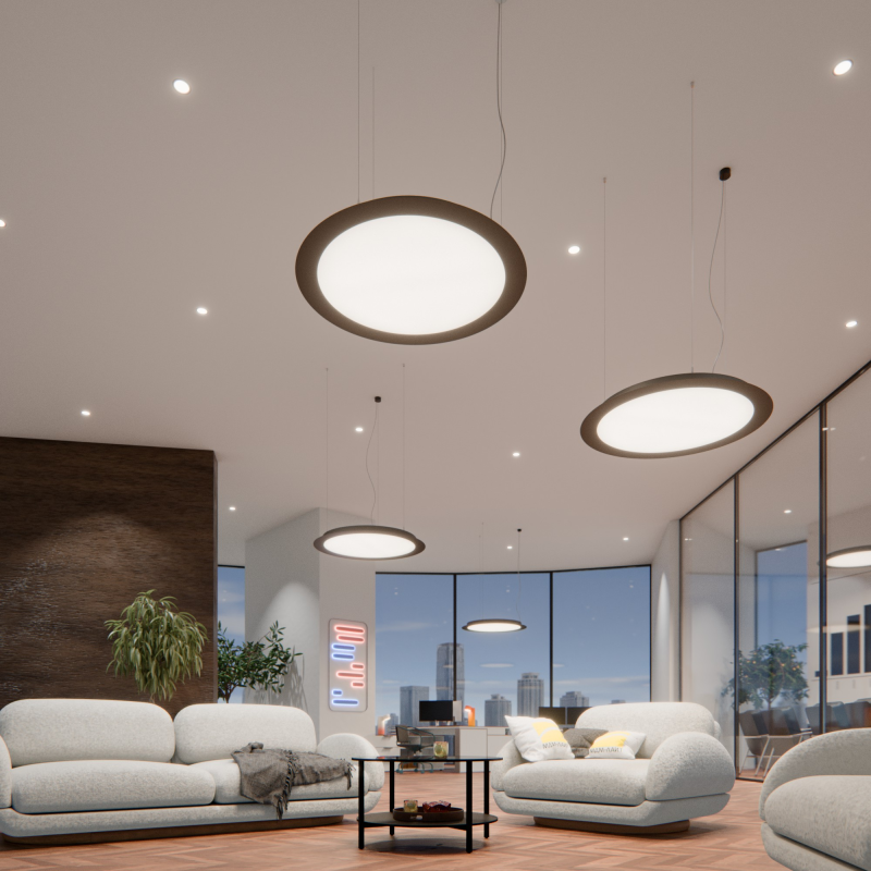 Магия SHLYAPA раскрывается при взгляде снизу: перед вами предстает идеальный светящийся диск, обрамленный ультратонким контурным кольцом. Благодаря фирменной технологии RINGO, которая полностью исключает видимую пикселизацию, достигается поразительный эффект абсолютно ровной и однородной световой плоскости. SHLYAPA — это не просто освещение, это целостный объект, превращающий свет в элемент высокого искусства.