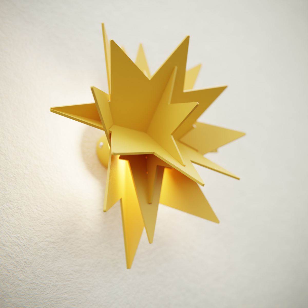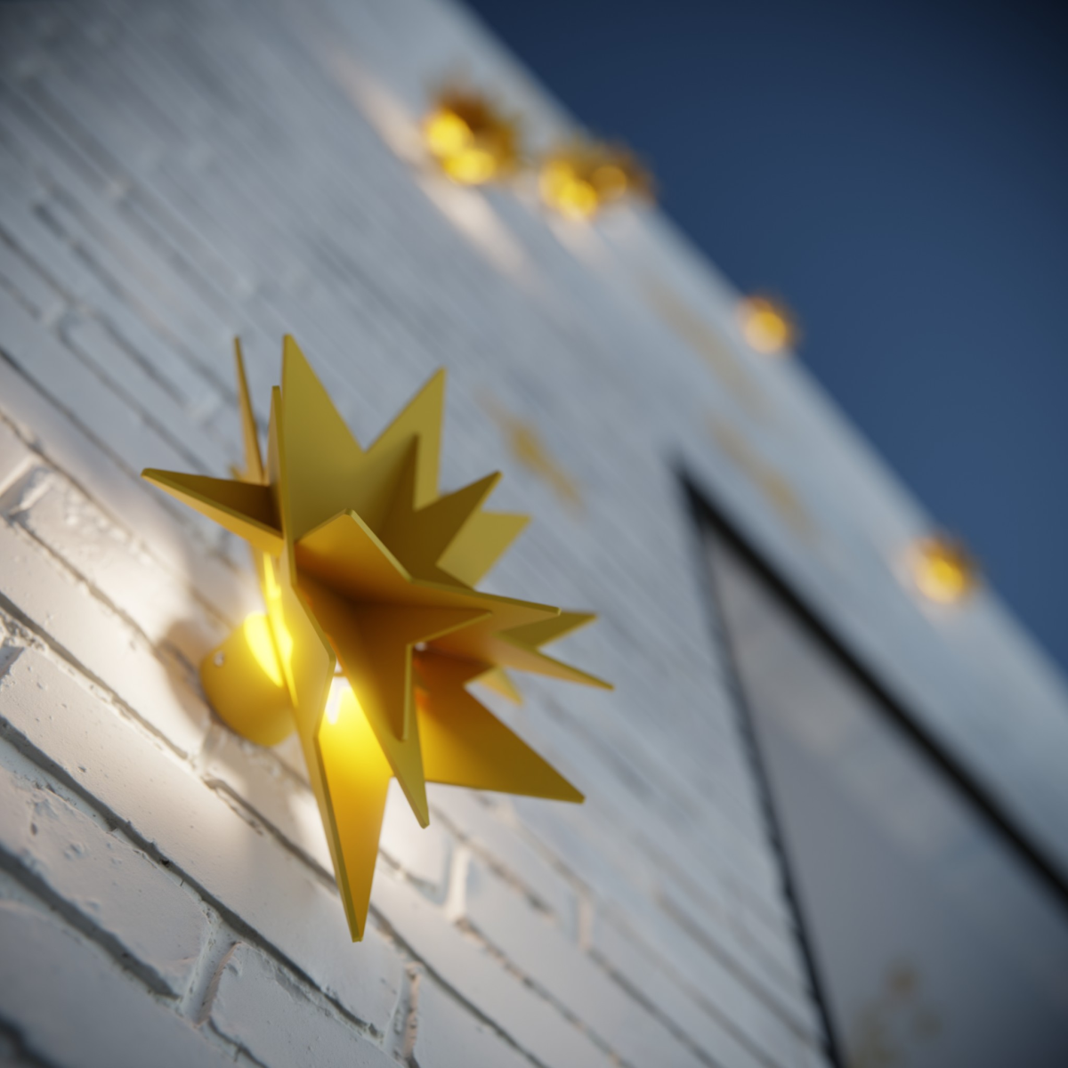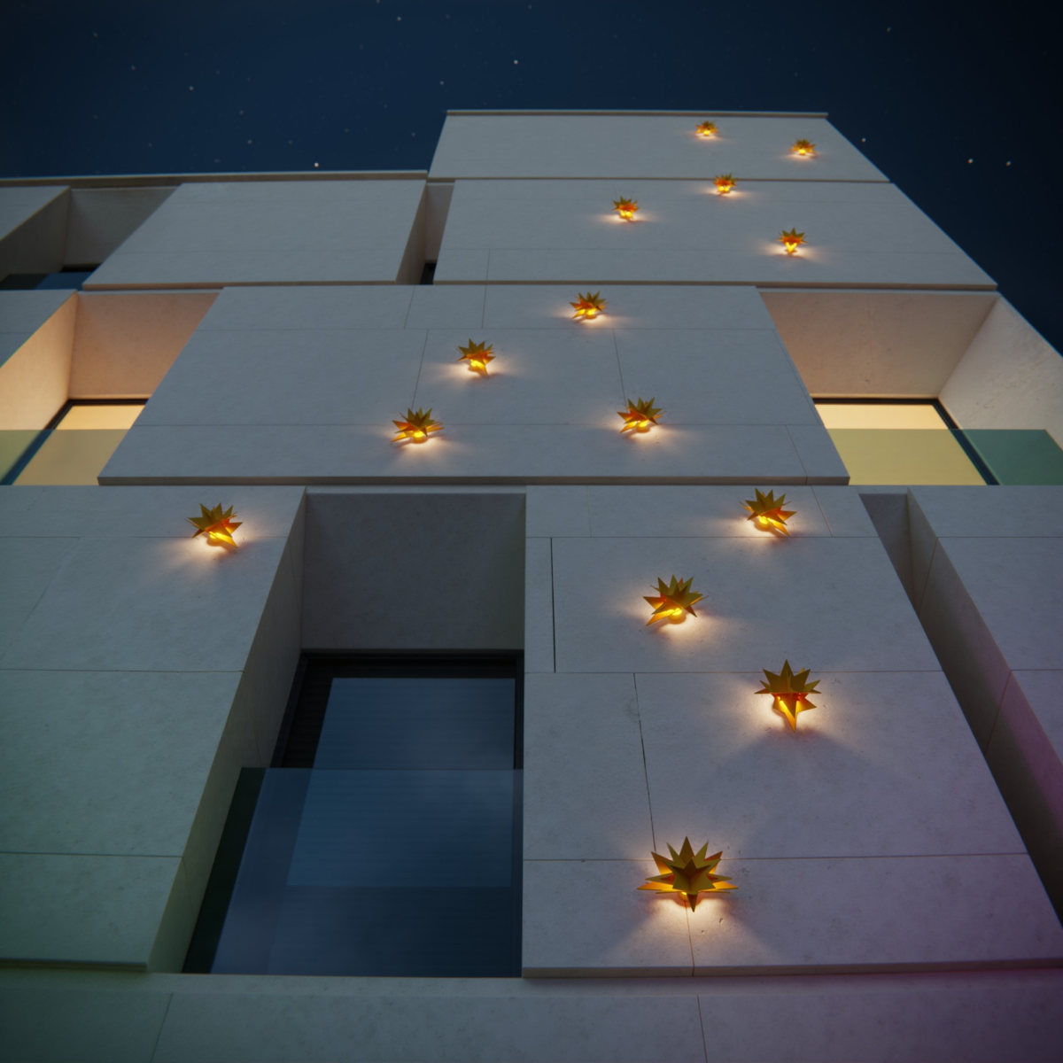 Светильник STARRY NIGHT — это уникальное решение для создания атмосферного освещения в экстерьере и интерьере. Модель выполнена в форме объемной звезды и предназначена для украшения фасадов зданий, а также помещений офисов, объектов HoReCa, жилых и торговых комплексов. Его ключевая особенность — уникальный декоративный световой эффект перенаправления светового потока в стороны, создавая мягкое и художественное освещение.