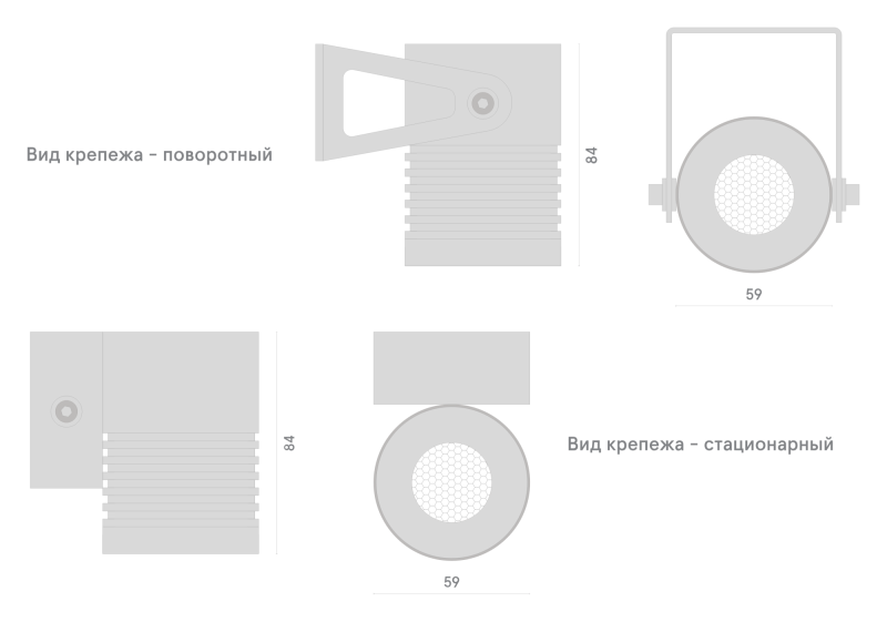 Конструкция TAGU на скобе позволяет наклонять световую часть (угол наклона - 270°). Конструкция TAGU на чашке позволяет поворачивать прожектор на 90°.