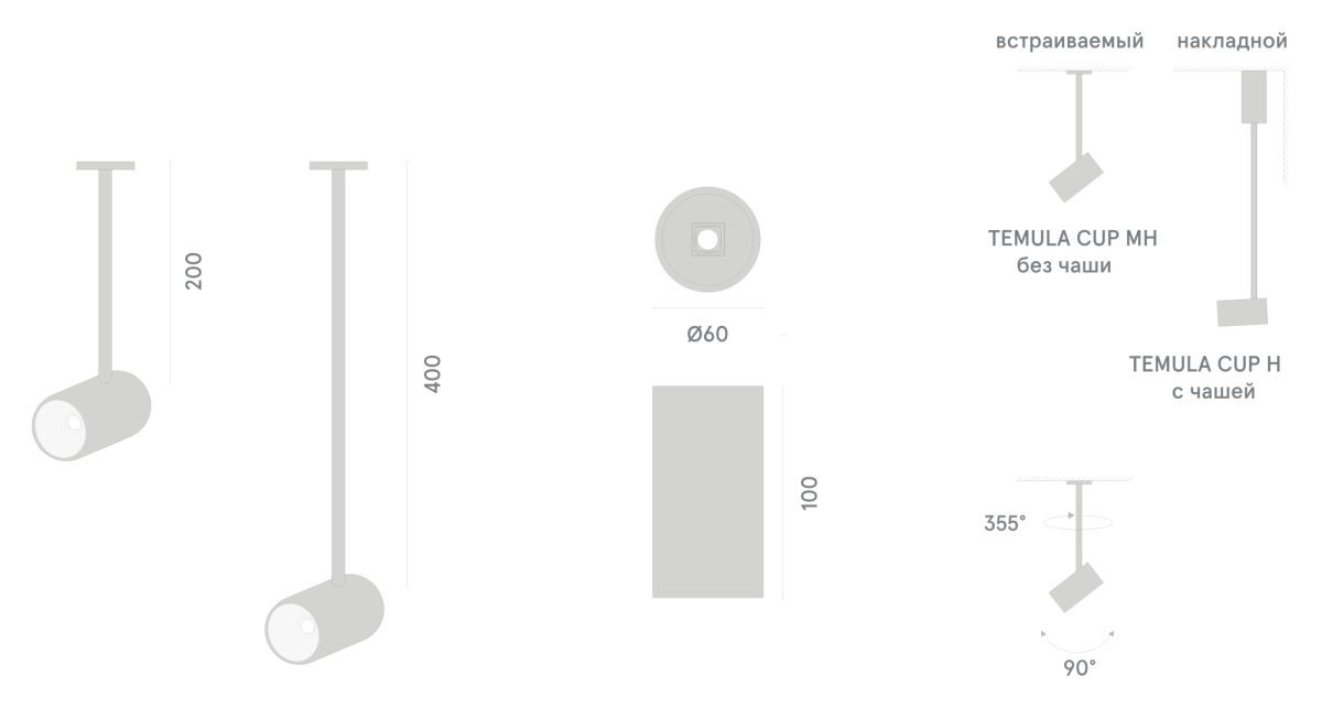 Серия акцентных светильников TEMULA CUP на жестком штоке.