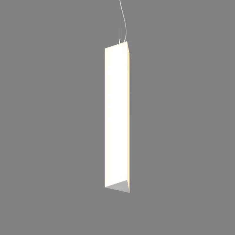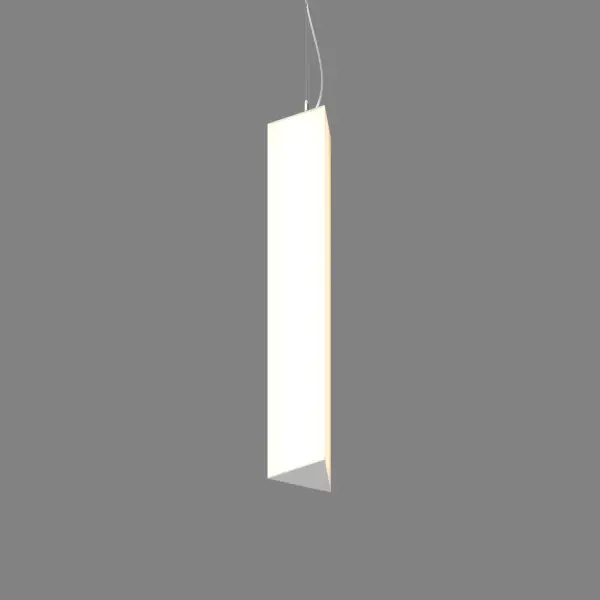 Подвесной светодиодный светильник TREU VERTICAL выполнен в виде продолговатой призмы на подвесе. Рассеивание света реализуется благодаря белому матовому поликарбонату, создающему мягкую и комфортную световую среду.
