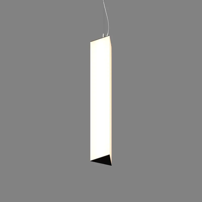 Подвесной светодиодный светильник TREU VERTICAL выполнен в виде продолговатой призмы на подвесе. Рассеивание света реализуется благодаря белому матовому поликарбонату, создающему мягкую и комфортную световую среду.