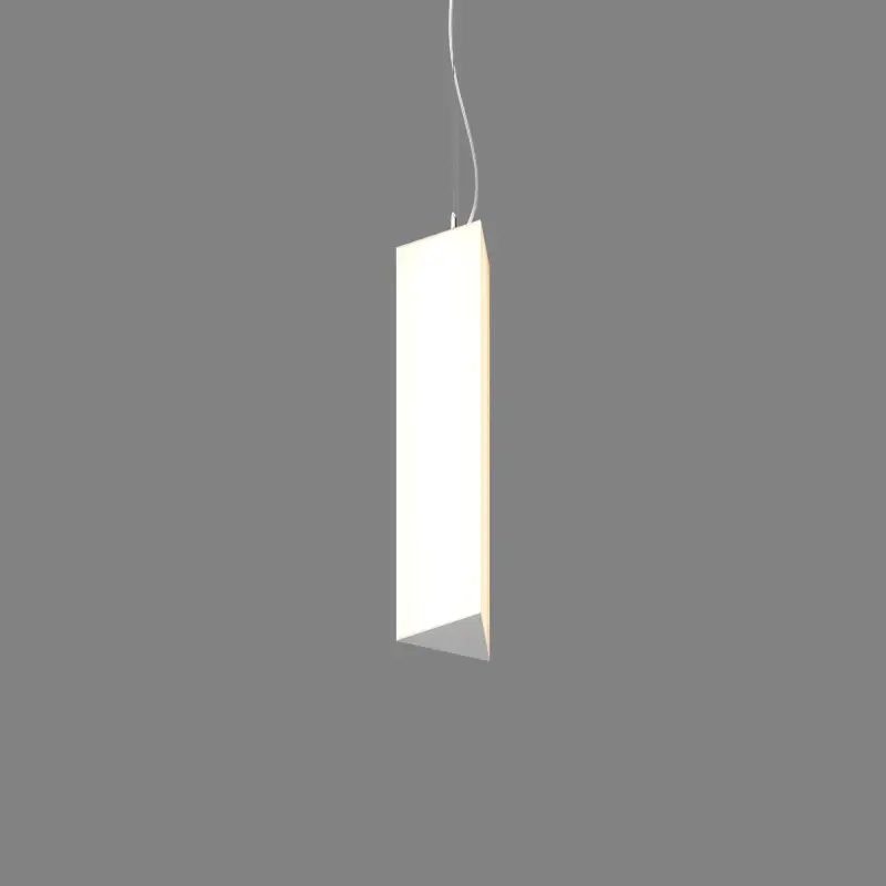 Подвесной светодиодный светильник TREU VERTICAL выполнен в виде продолговатой призмы на подвесе. Рассеивание света реализуется благодаря белому матовому поликарбонату, создающему мягкую и комфортную световую среду.
