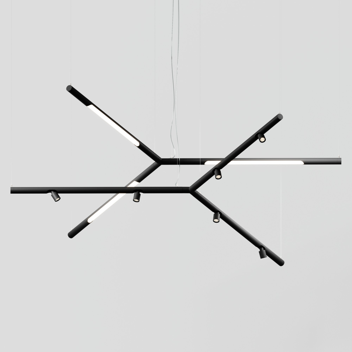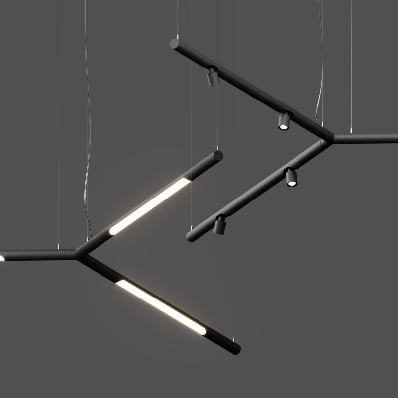 TRU-BAT – подвесной светильник-конструктор, созданный на основе двух моделей: TRU-BA и TUNIC mini. Отличительная особенность TRU-BAT – наличие декоративного элемента в виде сегмента крашенной трубы. С помощью декоративной части возможно составление любых композиций, а также изменение высоты установки осветительного прибора.