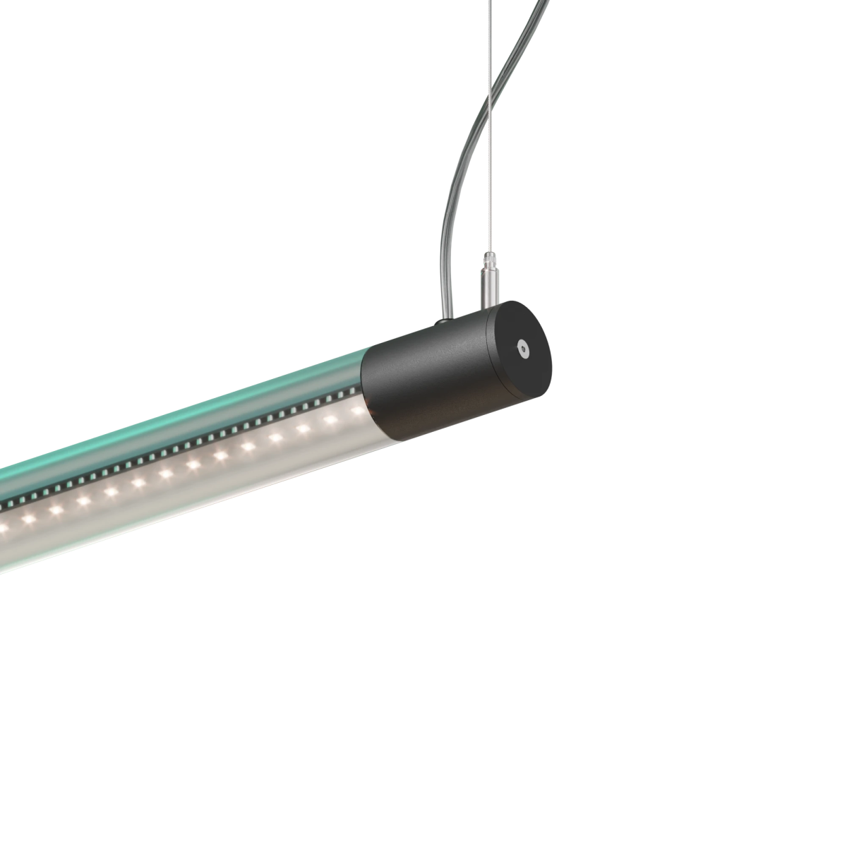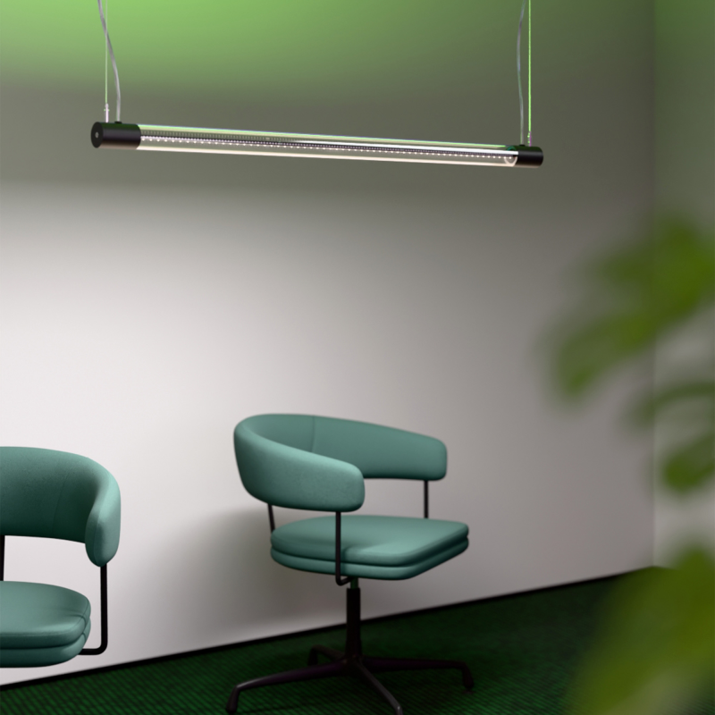 Гибкость светильника позволяет идеально адаптировать его под любой интерьерный сценарий. Благодаря матированному рассеивателю, доступному как опция, свечение становится особенно мягким и комфортным, полностью исключая блики. Управление этими возможностями интуитивно понятно — для переключения между режимами достаточно просто повернуть световой модуль. Лаконичный дизайн и компактные размеры (диаметр 50 мм, длина 1150 мм) делают TUBOL универсальным элементом, который легко и незаметно интегрируется в самые разные проекты, от строгих офисов до динамичных общественных пространств.
