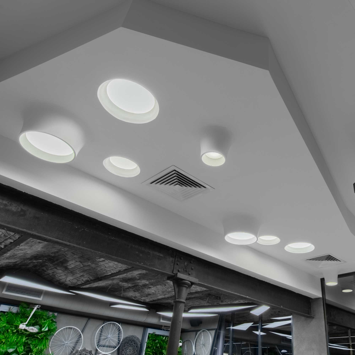 Серия гипсовых дизайнерских светильников VULK торговой марки БОСМА, интегрируемых в гипсокартонные поверхности (потолки и стены), представлена моделями, повторяющими форму вулкана. Это решение предназначено для элитных и дизайнерских интерьеров и обеспечивает эстетичность и одновременно высокую степень комфорта освещения. Светильник отличается низким энергопотреблением. Разработан и производится в России.
