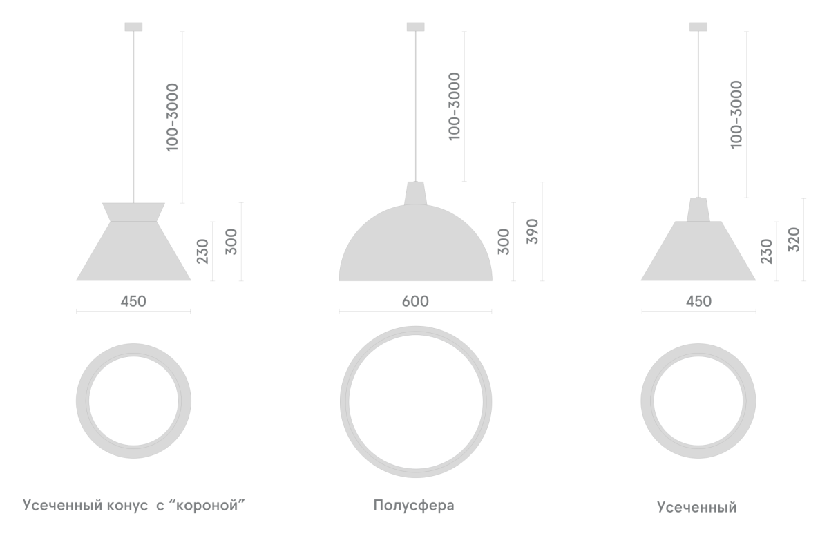 YAMAR P 25W 3000K Ra80 T60/Св-к LED конический,корона, d450х230мм(подв.1,5м)(БОСМА)БЕЛЫЙ |