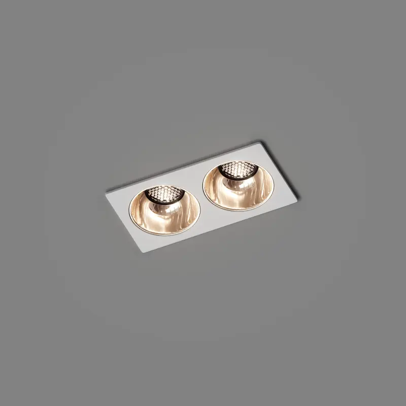 Материал корпуса – алюминий. Изготовлен методом литья. Сотовый блокиратор в светильники снижает общий показатель дискомфорта (UGR).На выбор представлены четыре типа корпусов: квадрат (одиночный), два и три светильника прямоугольной формы, квадрат из четырех моделей. Доступны четыре цвета внутреннего кольца на выбор: матовый черный, матовый белый, глянцевое золото, глянцевый хром.