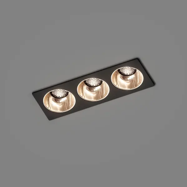 ZONIK SQUARE 3x10W 3000K Ra90 38гр./Св-к LED IP44 димм.DALI,247x88мм(встраив.)(БОСМА)ЧЕРНЫЙ/ЗОЛОТО
