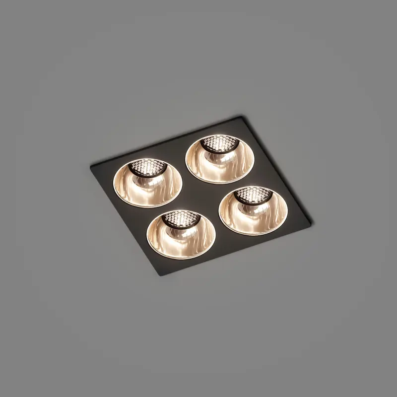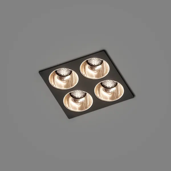 ZONIK SQUARE 4x8W 4000K Ra90 38гр./Св-к LED IP44, 168x168мм(встраиваемый)(БОСМА)ЧЕРНЫЙ/ЗОЛОТО