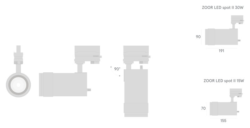 Серия светодиодных прожекторов ZOOR LED spot II – это трековые светильники с настраиваемым углом света в пределах 10-60° и изменяемой цветовой температурой (холодный белый/нейтрально белый/теплый белый).