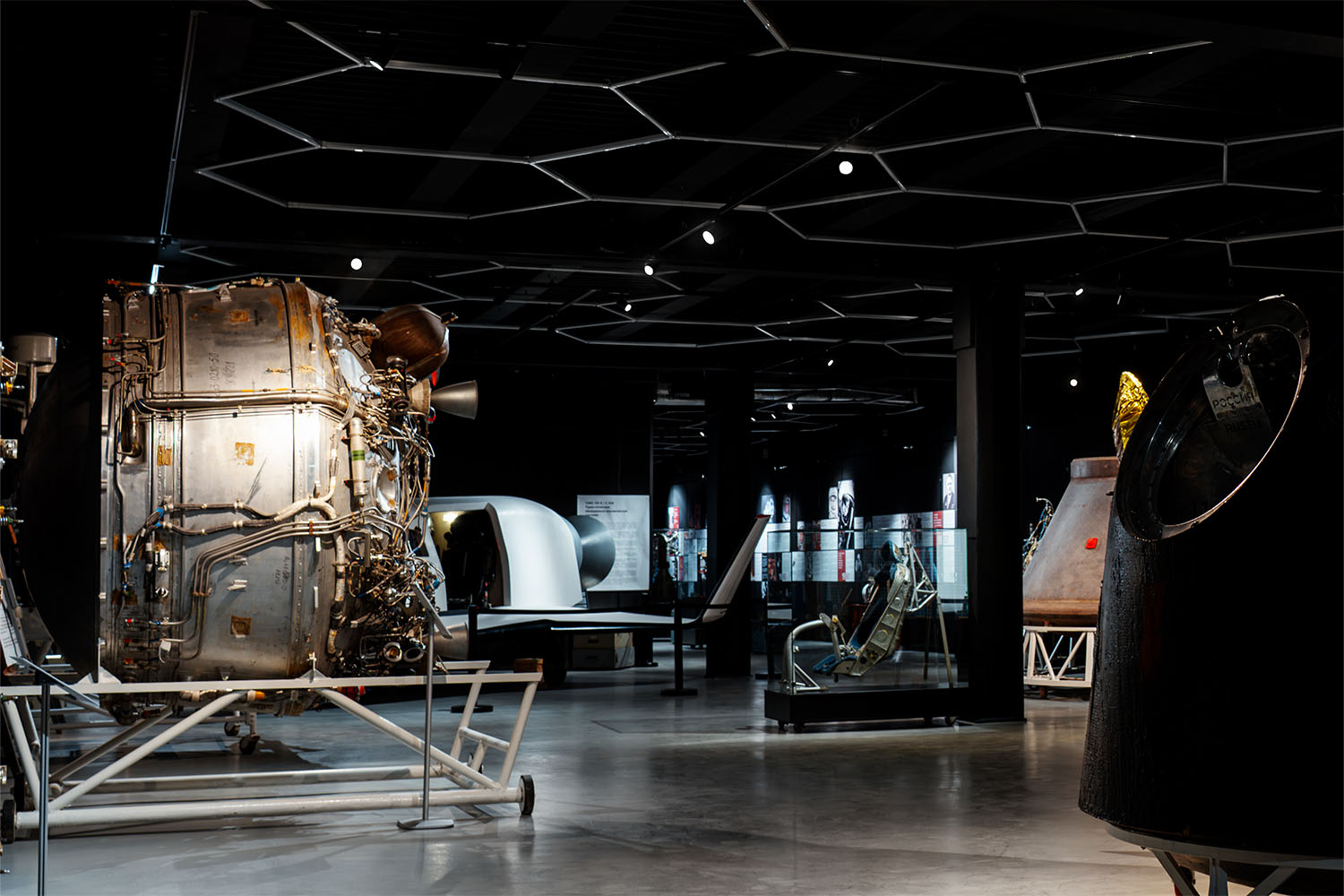 Более 70 прожекторов TUNIC LED spot II mini были установлены для создания световых акцентов. Высокий индекс цветопередачи CRI 97 гарантирует точное, без искажений, восприятие оттенков исторических документов и космических экспонатов. В условиях затемнённого зала это обеспечивает максимальную визуальную точность и концентрацию внимания на объектах.