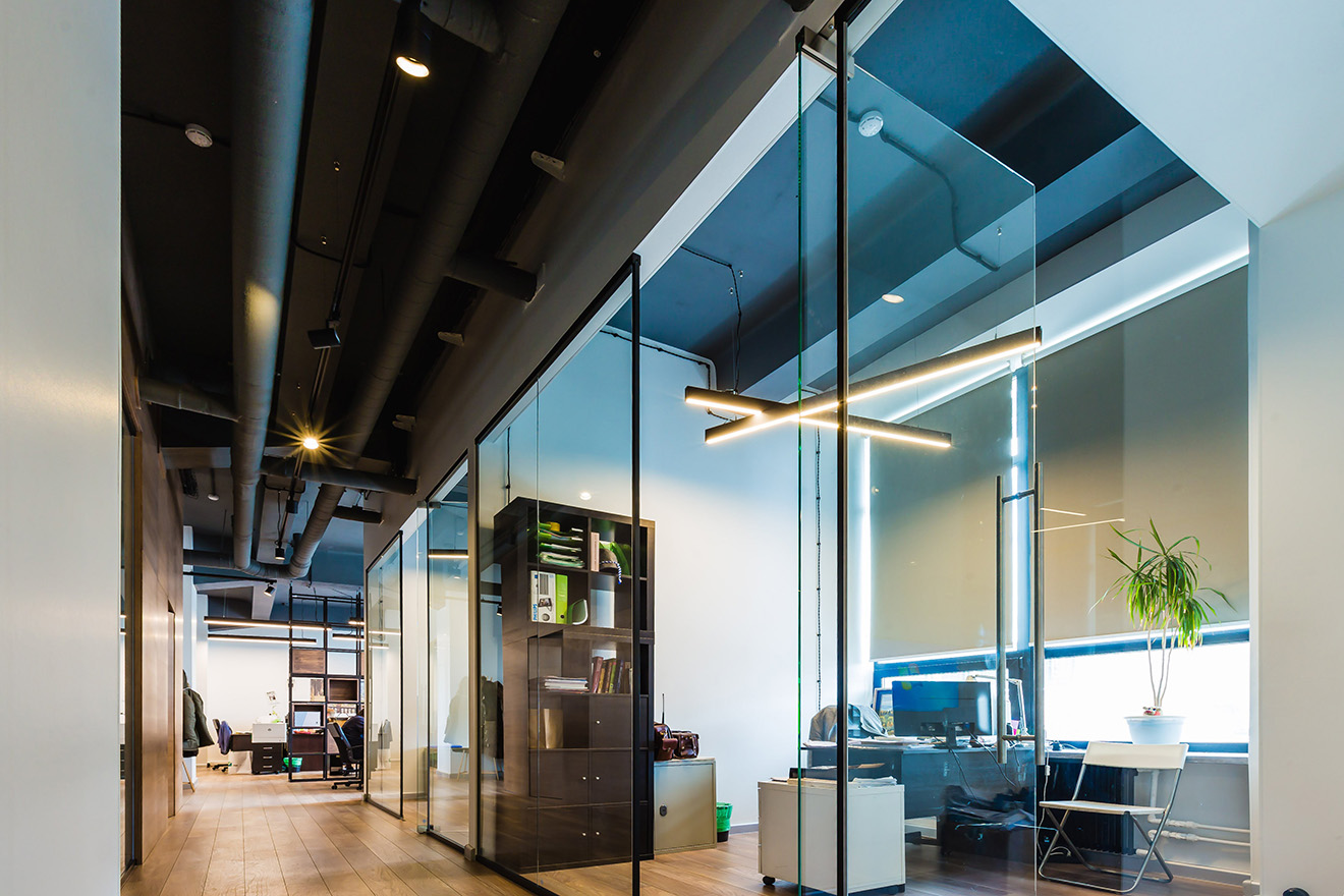 Группа компаний «Экостандарт» является лидером в сфере экологической экспертизы и сертификации, охраны труда, инженерных исследований. За двадцать лет существования организация выполнила более трех тысяч проектов, триста из которых — федерального значения. ГК «Экостандарт» аккредитована в международном сообществе по «зеленому» строительству U.S. Green Building, является первым в России партнером глобальной программы по достижению нулевого травматизма на рабочем месте Vision Zero и партнером международного движения WorldSkills. Специалисты по охране труда знают о необходимости обеспечения правильного освещения в рабочих зонах. Качественные показатели освещения в помещениях во многом определяются правильным выбором источников света и светильников. Исходя из требований к освещению, для оборудования офиса «ЭСГ «ОХРАНА ТРУДА», входящей в ГК «Экостандарт», были выбраны светильники нашего производства. Проект освещения включает в себя систему трековых светильников NABU spot, размещенную в коридорах офиса. Трехфазный адаптер светильников обеспечивает включение и выключение групп прожекторов одной клавишей, что позволяет быстро и эффективно управлять световым зонированием в освещаемых зонах. Для общего освещения выбраны группы подвесных светильников серий hoop!, INI LED 04 и INI LED DELTA 01.