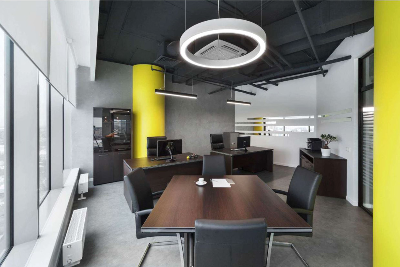 Желтый - прекрасный цвет. Он символизирует радость и оптимизм, улучшает настроение и удивительным образом преображает интерьеры. Дизайн, созданный в студии DesignMila, лучшее тому подтверждение. А офисные светильники серий INI LED, hoop! и INI LED ZIGZAG подчеркивают дизайнерское решение.