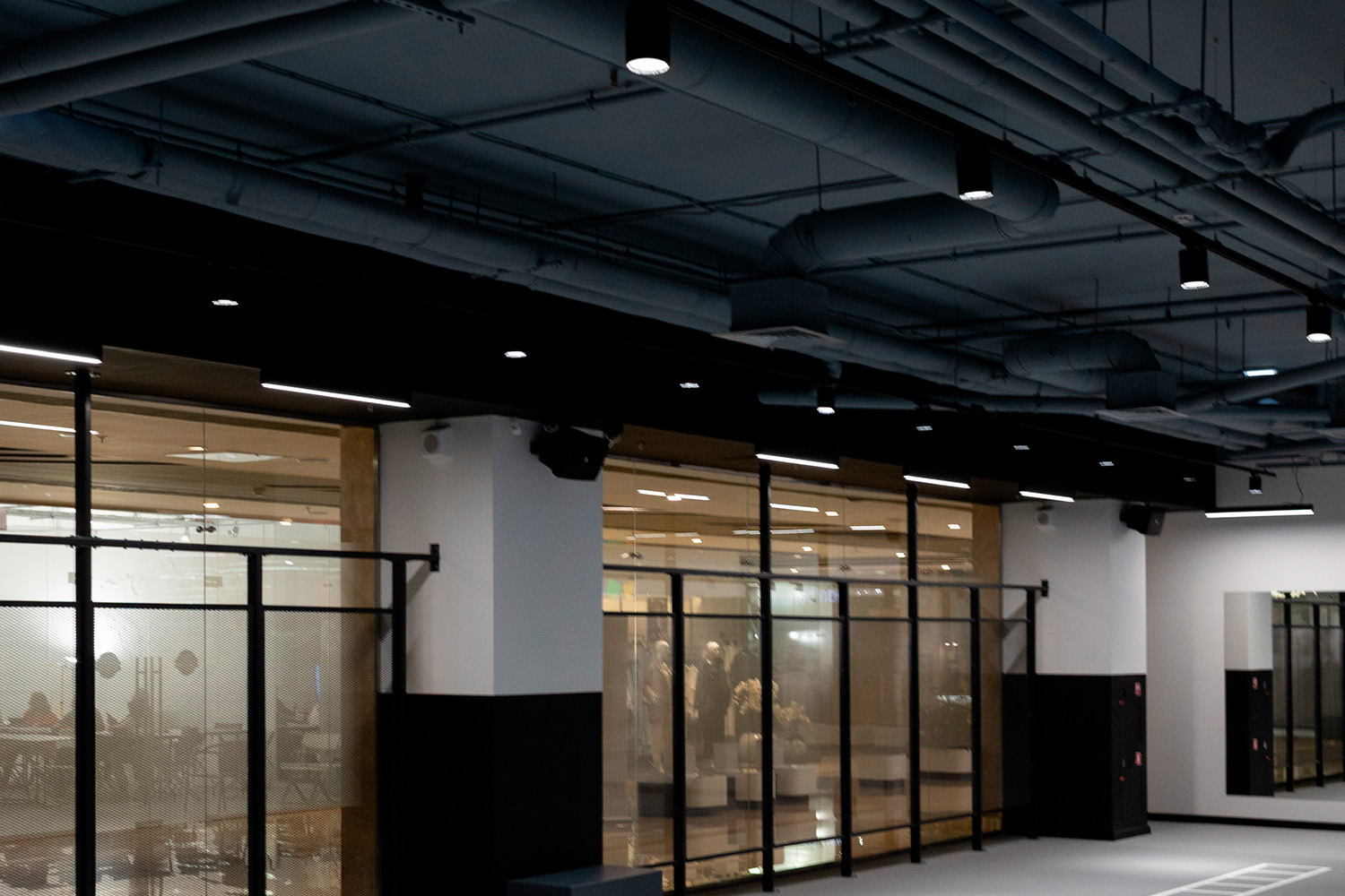 Особое внимание уделено балансу между функциональностью и атмосферой. Свет помогает ориентироваться в пространстве, выделяет ключевые зоны и поддерживает ощущение собранности, которое важно для спортивного объекта. В интерьере бокс-клуба он не спорит с архитектурой, а усиливает её: подчеркивает линии, объемы, фактуры и общий индустриальный характер пространства.