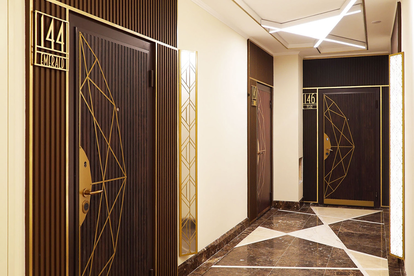 Нестандартные светильники для коридоров ЖК UNION PARK. Светильники были созданы по индивидуальным параметрам. Идея заключалась в том, чтобы повторить на потолке узор дизайнерской плитки. Для осуществления задуманного мы разработали и произвели модель светильника, объединяющую линейный светильник и треугольный светильник с большой площадью светящейся поверхности. Светильник представляет собой единую конструкцию, которая крепится накладным способом.
