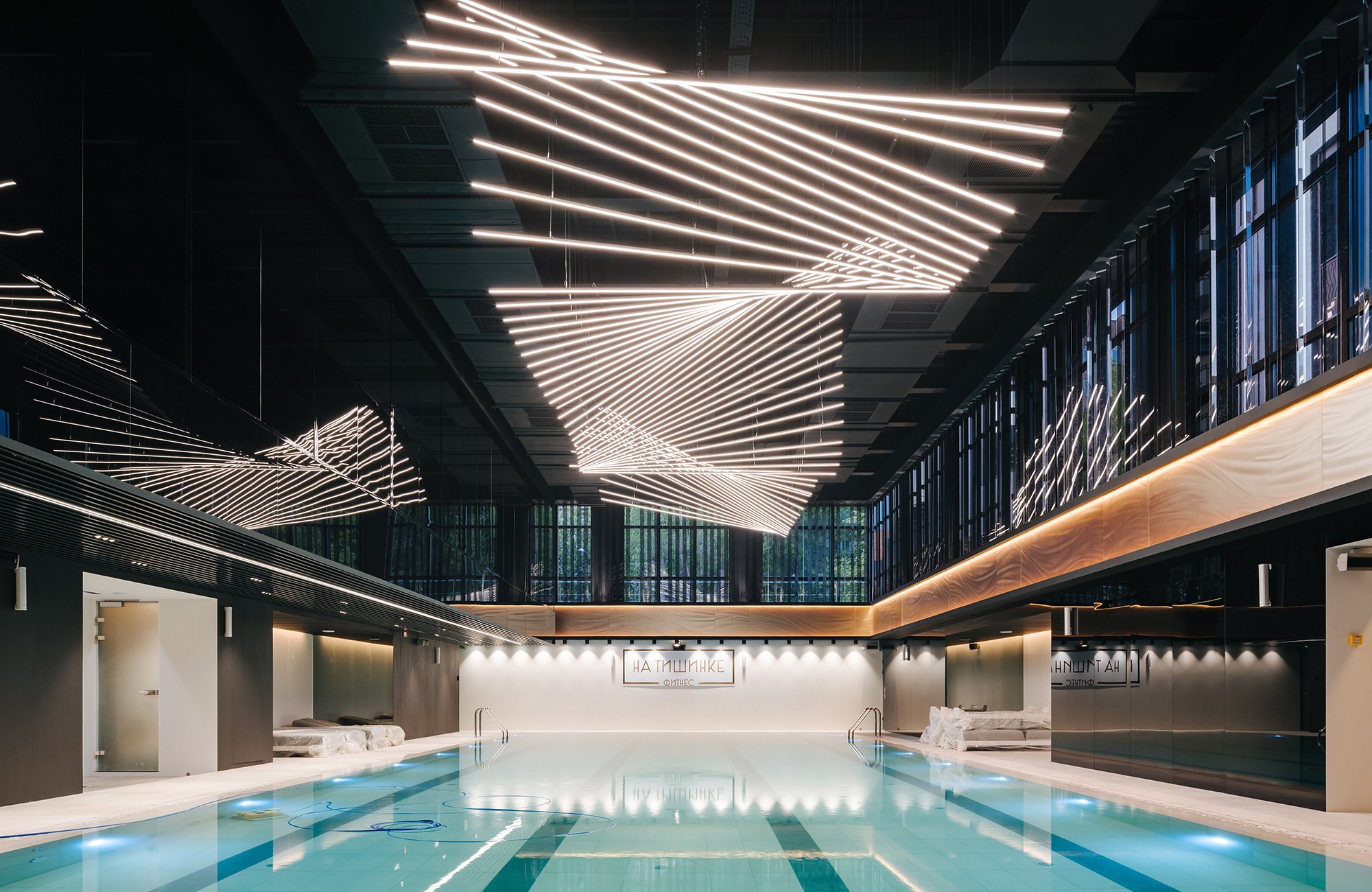 - Как использовались коммерческие светильники: доминантой композиции из современных светильников, представленных в проекте, являются специально усовершенствованные для передачи настроения экзотики Востока знаменитые круглые LED- светильники HOOP II, парящие в воздухе на изящных подвесах (напоминающие великолепные роскошные пиалы из тончайшего фарфора, окруженные шлейфом из капель чая). Сценариями освещения можно управлять автоматически (система DALI).