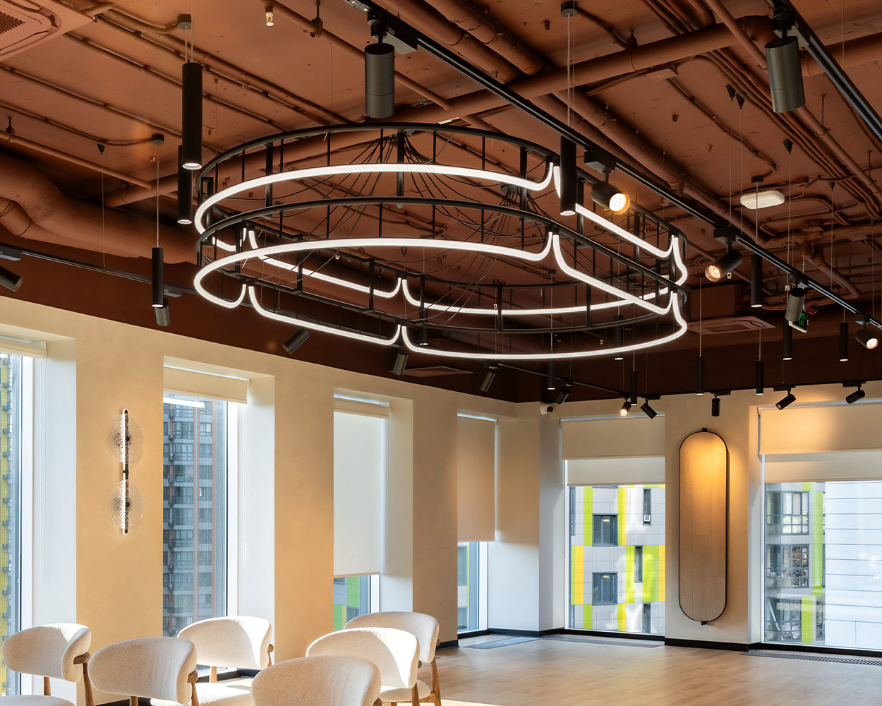 - нетипичные светотехнические задачи; например, сочетание функций общего, акцентного и атмосферного освещения у крупного подвесного светильника, др.