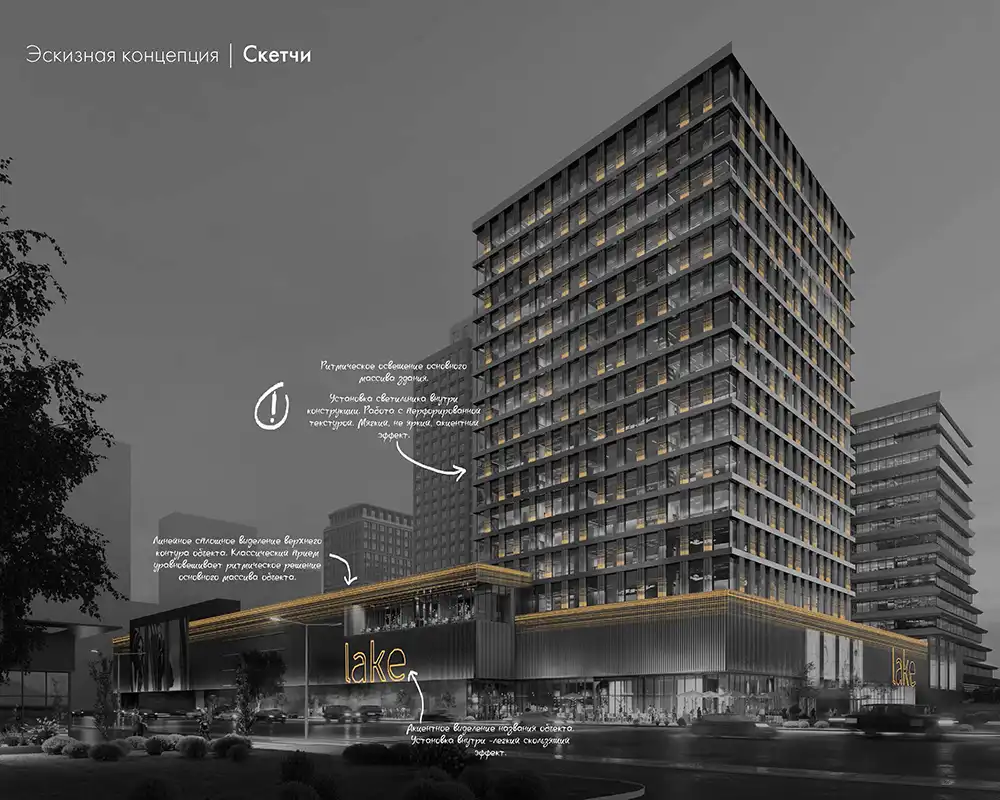 Разработка каждой концепции – индивидуальна, но базируется на опыте наиболее удачных кейсов светотехнических решений схожей функциональной направленности.