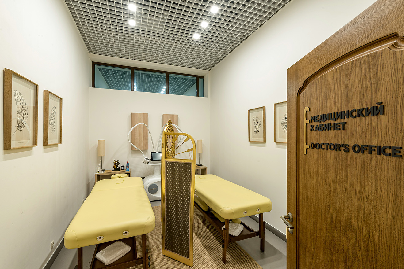 Остальные помещения комплекса: общественные зоны, кабинеты и спортивные залы имеют более строгий вид, в них меньше декоративных элементов, а освещение нейтрально-белое, помогающее лучшей концентрации спортсменов и сотрудников комплекса.